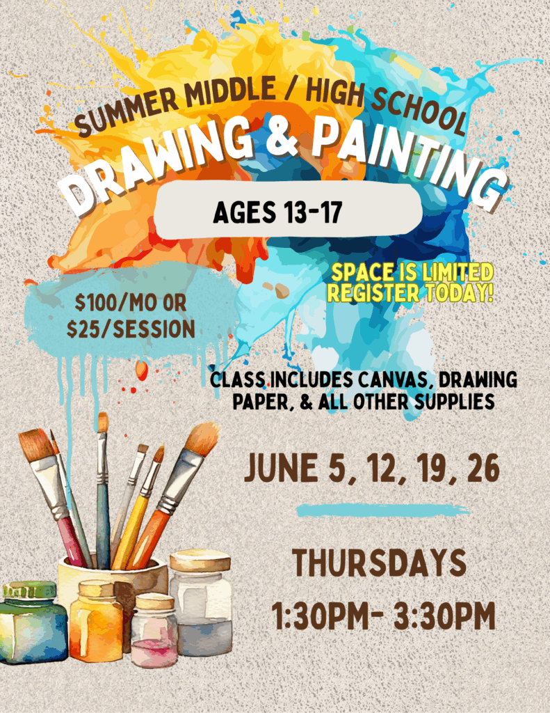Through engaging classes and camps, we introduce kids to the joy of painting, drawing, and creative exploration. Whether they’re picking up a paintbrush for the first time or looking to build on their skills, our supportive and hands-on approach helps young artists learn, grow, and express themselves in exciting new ways.